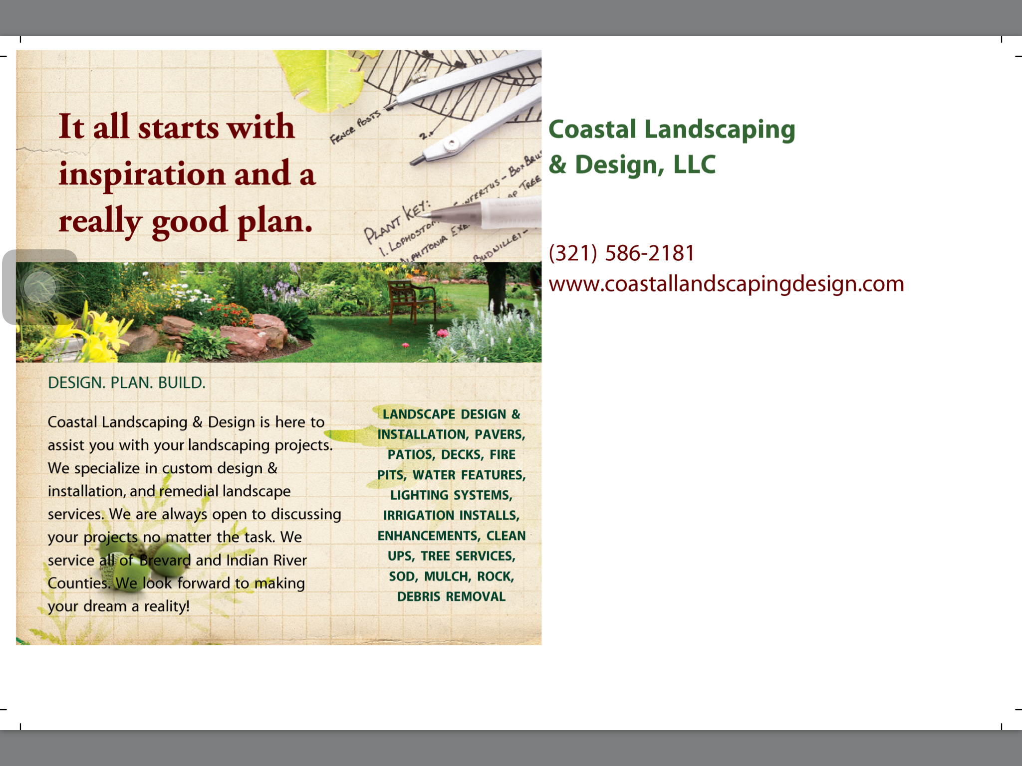 Coastal Landscaping & Design is here to help you with your landscaping needs. We are happy to discuss your project with you to see how we may be of service to you! We service all of Brevard and Indian River Counties.