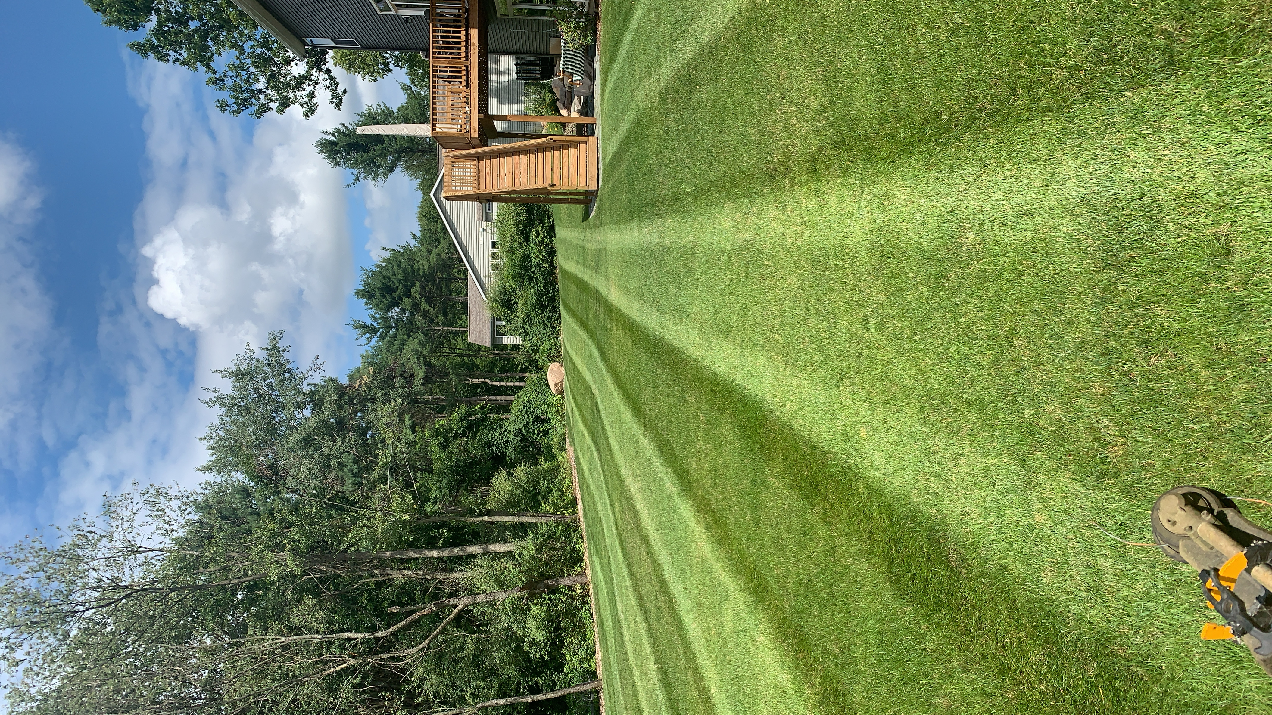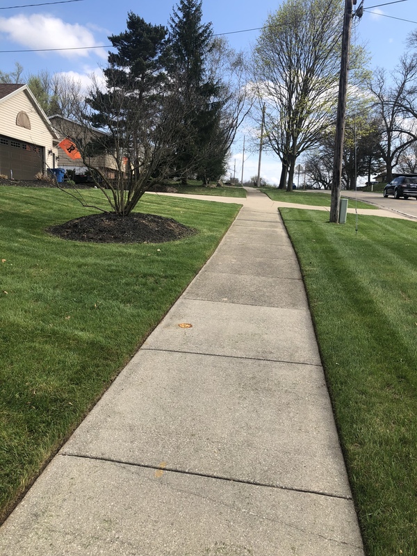 - FULL SERVICE MOWING: Lawn will be cut to a seasonally appropriate height. The grass or weeds growing up against fences, structures, and trees in the yard will be trimmed. We will edge your property, creating a defined grass border along sidewalks/driveways and already created natural flower beds. All grass clippings will be cleaned off of your driveway, sidewalks, curb, and other reasonable areas with a leaf blower.