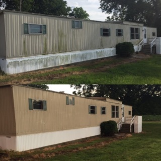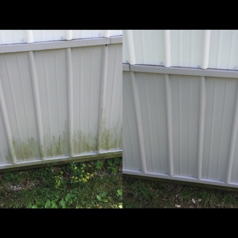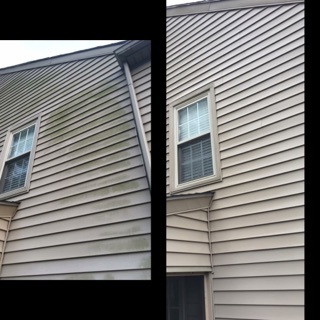 - Low pressure "soft wash" of house siding, roof, gutters, windows, and fence.