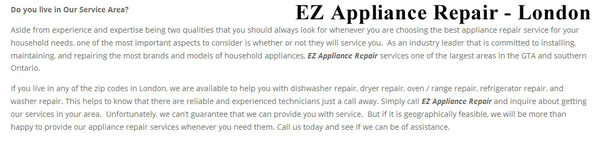 Whether you are considering appliance repair in London, Ontario or planning to contact a microwave oven repair service, you need to call EZ Appliance Repair. As one of the most reliable and trusted services, we serve the residents and commercial establishments in the province of Ontario.