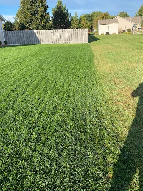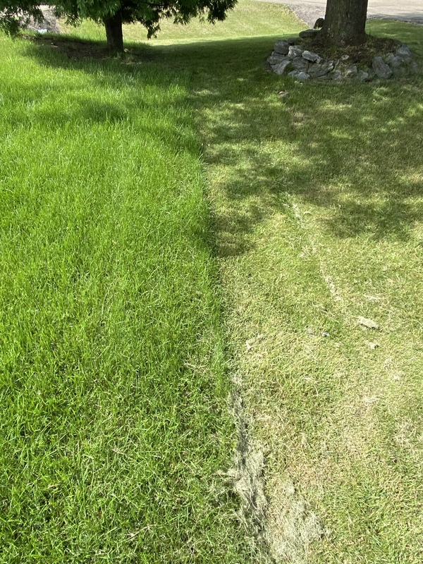 A clear difference between proper lawn care. Keeping grass green and lush!