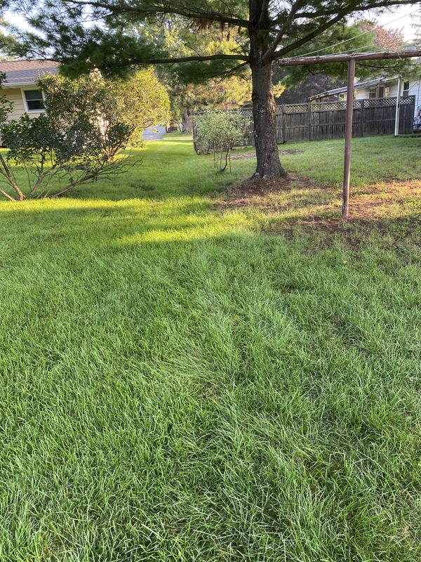 This is a after picture a month later with just one treatment of fertilizer and weed control. With the Creeping Charlie almost gone you can see the damage that it caused to grass, leaving bare spots. Nothing some new grass seed can't fix.