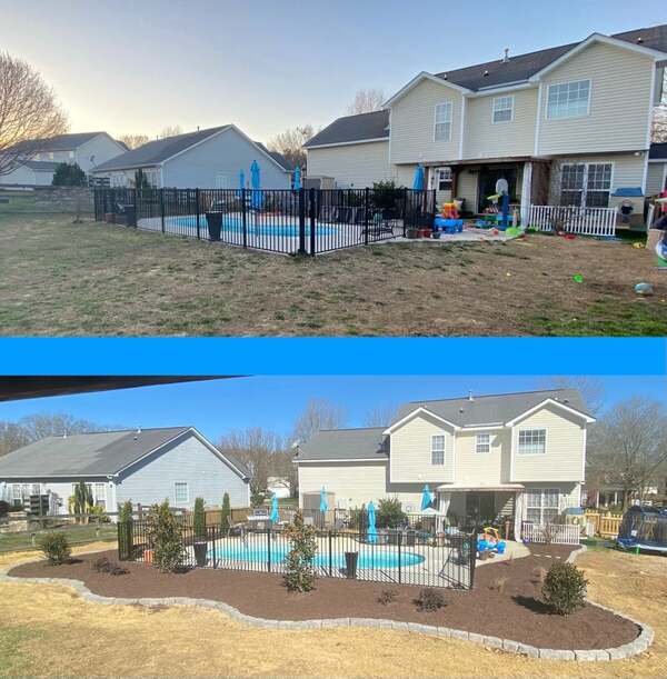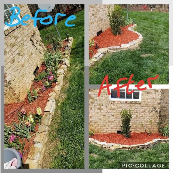 - Mulch, pine needles, stone flower bed installation
