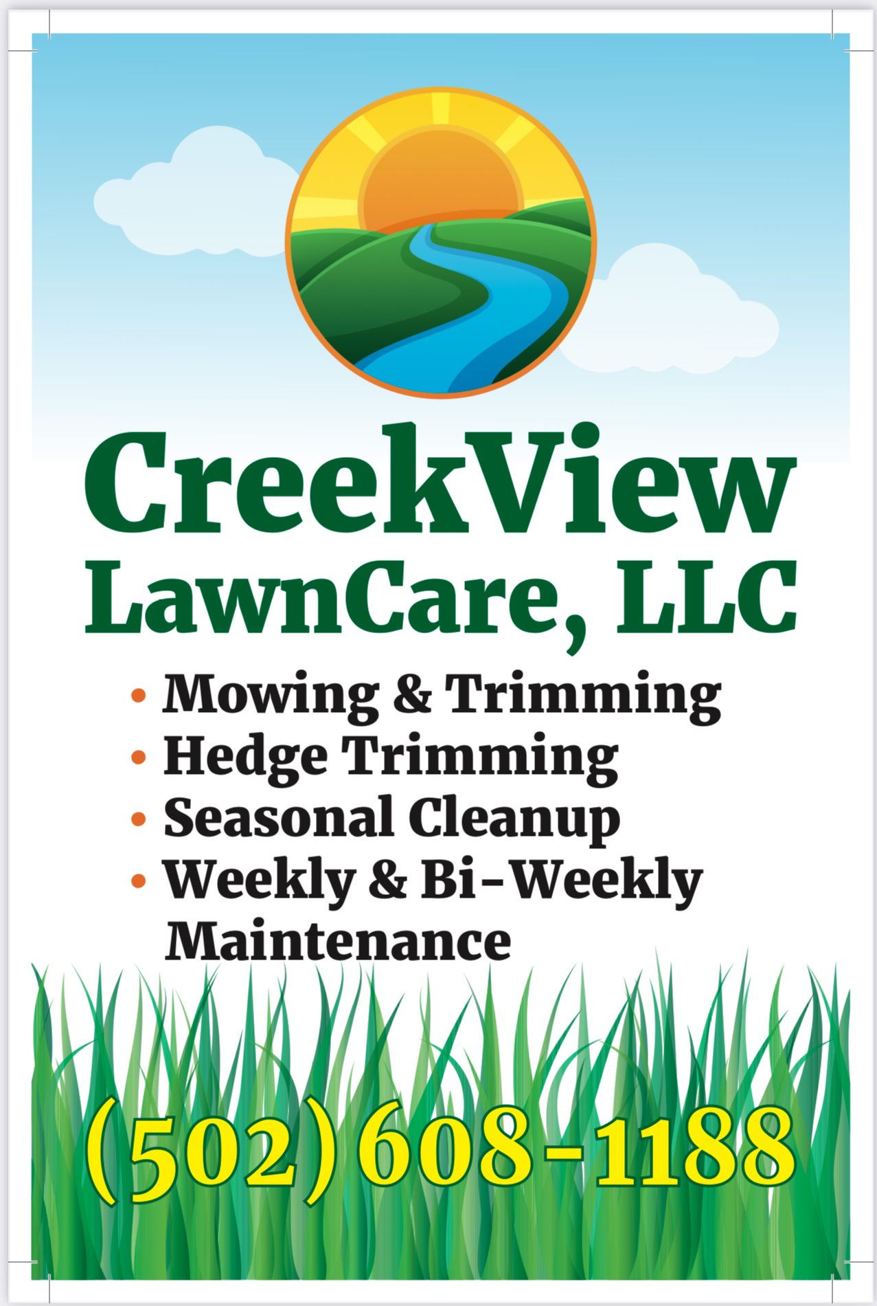 Hello, welcome to CreekView LawnCare,LLC.