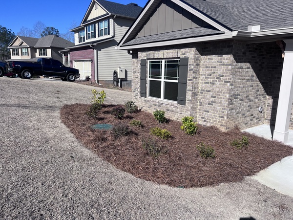 - pine straw, mulch, and rock installation