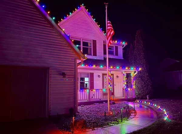 Custom Design: We create a lighting plan tailored to your home or business — from classic white elegance to vibrant, colorful displays.